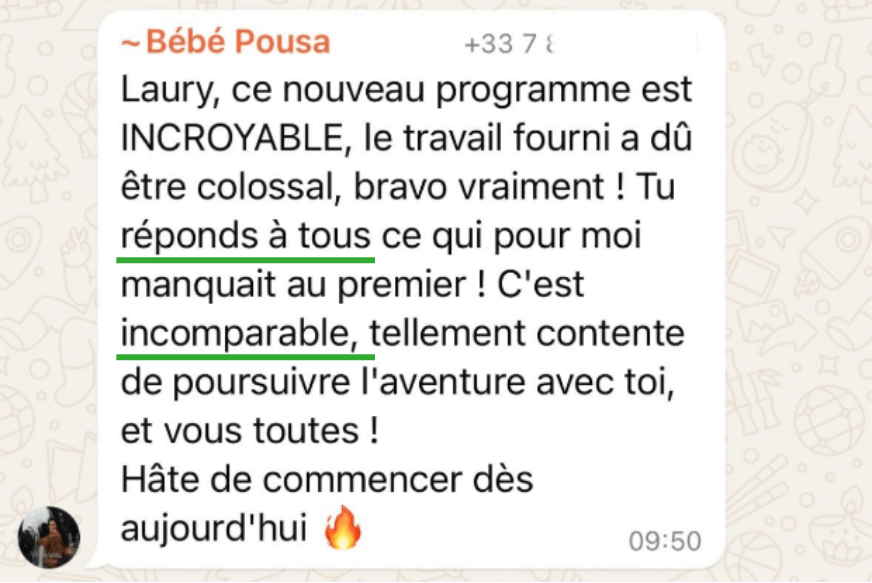 " Laury m'a vraiment mise en confiance. Elle veut être dans la bienveillance et dans le bien être. Elle nous oriente, elle est toujours là à notre écoute pour nous accompagner. Les résultats m'ont bluffée. Laury est une jeune femme qui mérite vraiment. Je la recommande très souvent autour de moi"